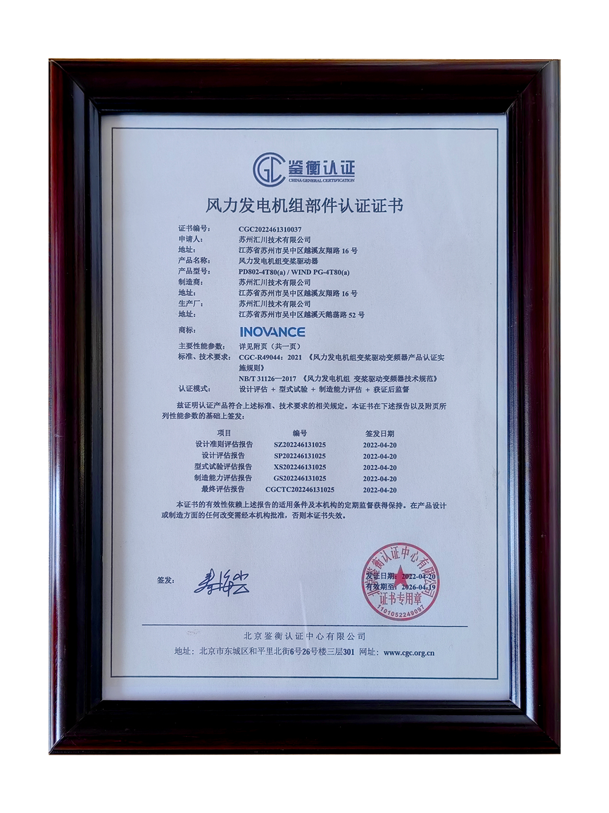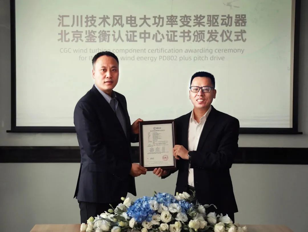 世界風能協會副主席、中國可再生能源學會風能專業委員會秘書長、北京鑒衡認證中心主任秦海巖,北京鑒衡認證中心工業基礎技術及部件事業部總經理李浩然,全球風能理事會戰略總監趙鋒、中國區主任梁萬良,匯川技術風電行業總經理郭廣東等領導出席了頒證儀式,秦海巖代表北京鑒衡認證中心為匯川技術現場頒發了“風力發電機組部件認證證書”。