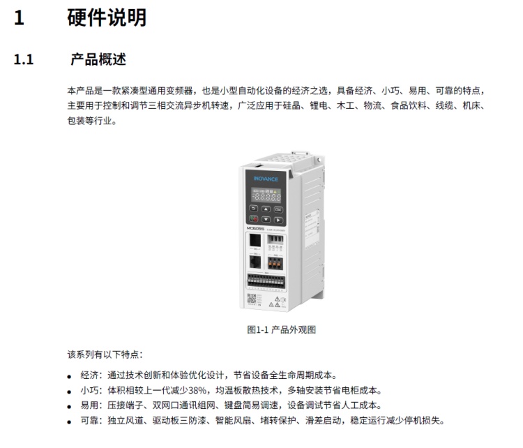 MD600系列變頻器是一款緊湊型通用變頻器,也是小型自動化設備的經濟之選。具備經濟、小巧、易用、可靠的特點,主要用于控制和調節三相交流異步機轉速,廣泛應用于硅晶、鋰電、木工、物流、食品飲料、線纜、機床、包裝等行業。
