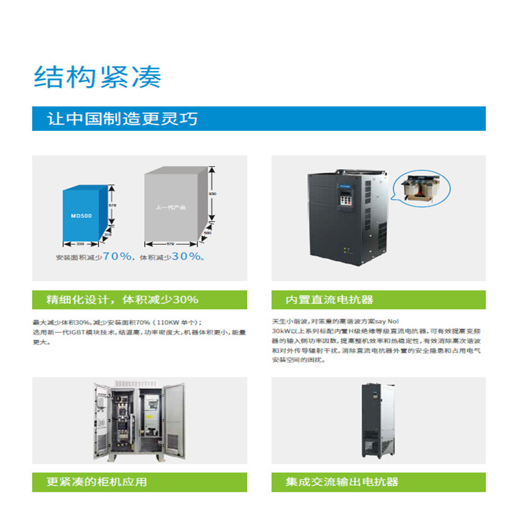 匯川變頻器MD500是匯川技術(shù)匯集了矢量變頻技術(shù)的高性能變頻器,憑借高性能的電流矢量技術(shù),可輕松驅(qū)動感應(yīng)電動機。MD500 采用高性能、高品質(zhì)、高功率密度設(shè)計,在易用性、可維護性、環(huán)保性、安裝空間和設(shè)計標(biāo)準(zhǔn)等方面有顯著提升,可進一步優(yōu)化用戶的使用體驗。